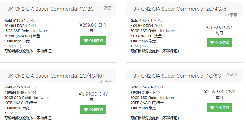 UK CN2 GIA,伦敦数据中心,自有线缆,超千兆CN2带宽接入,万兆国际带宽接入。联通电信双程CN2 GIA,移动回程CN2 GIA。目前可解锁Netflix、Disney+,不做流媒体解锁保证。